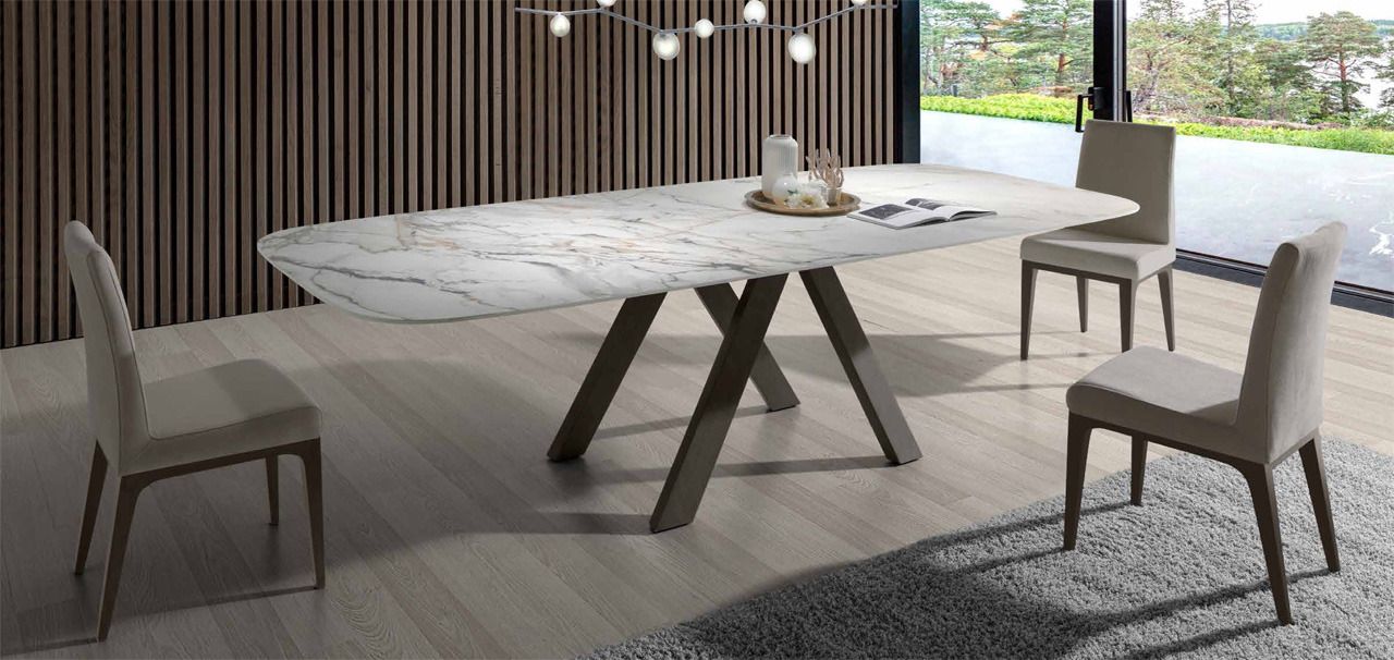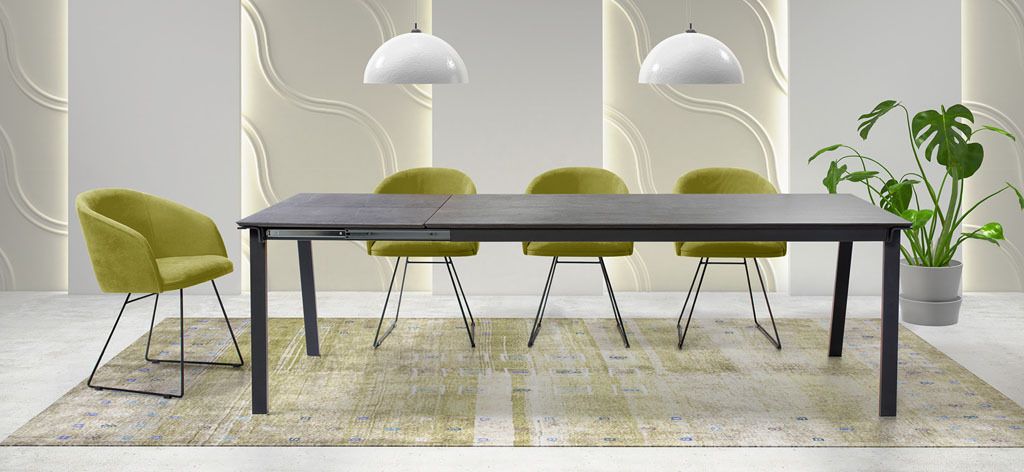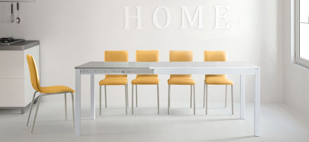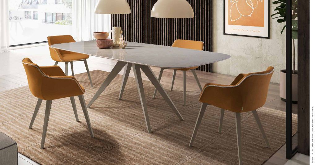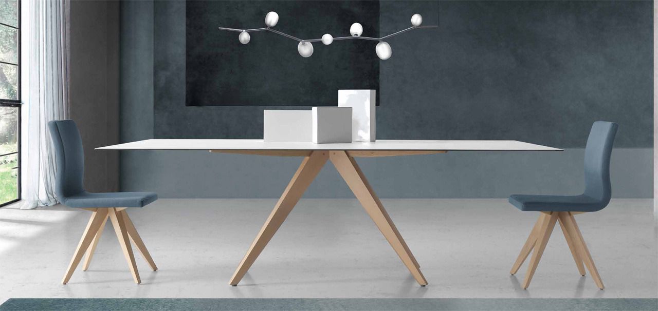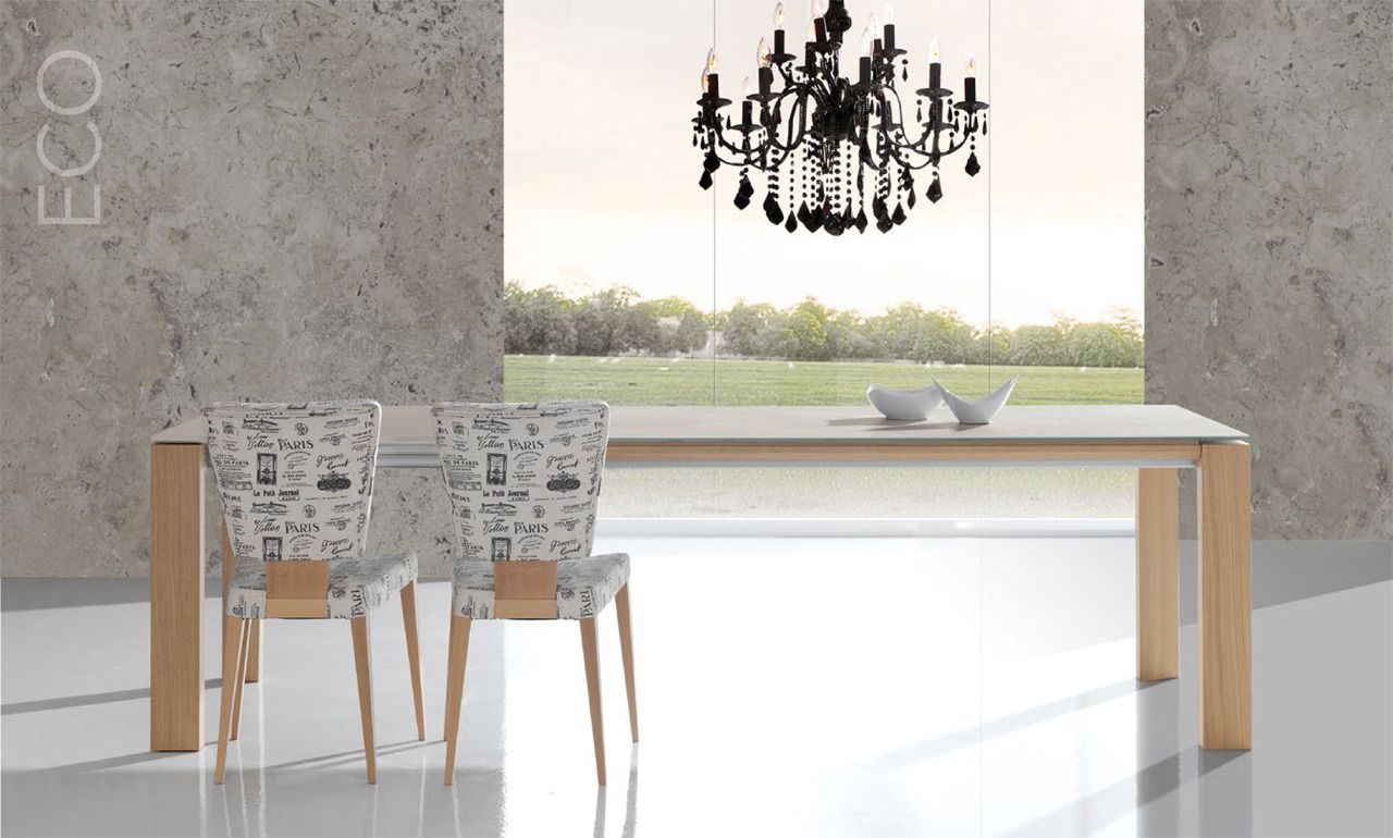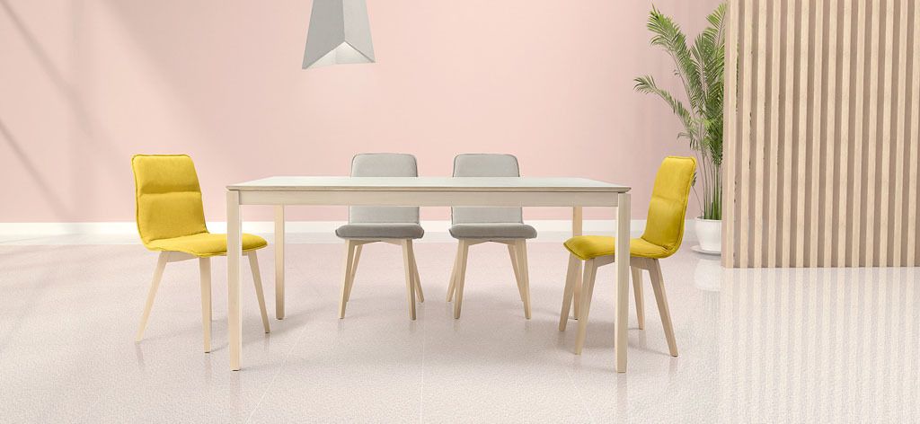 Mesas en tapas porcelanicas de diferentes colores fijas y extensibles.