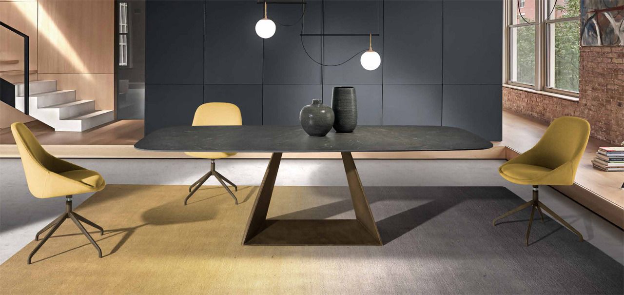 Arquus es una mesa vanguardista y contemporánea. Por su diseño, la superficie de la mesa parece flotar en el aire encima de las patas.