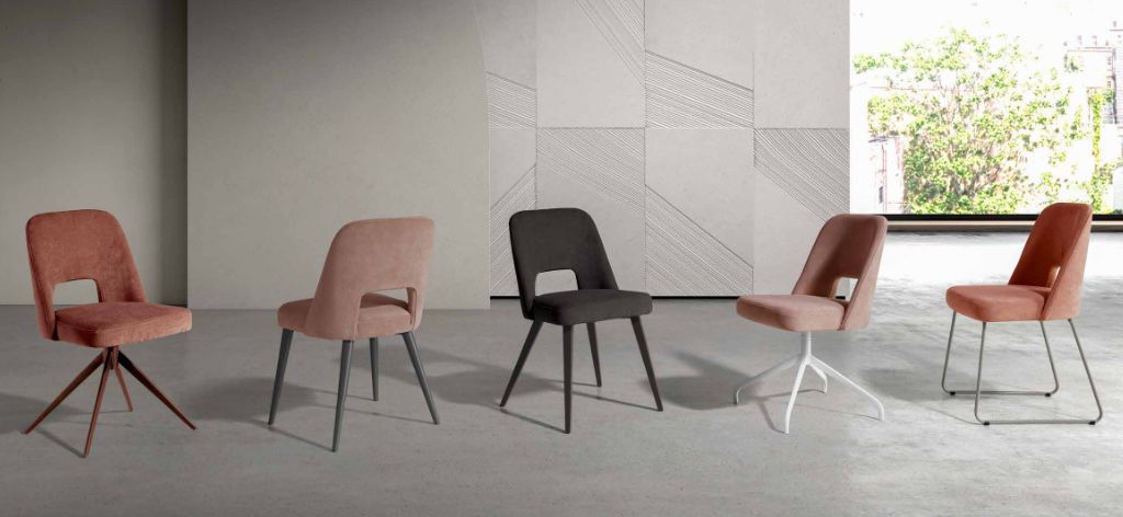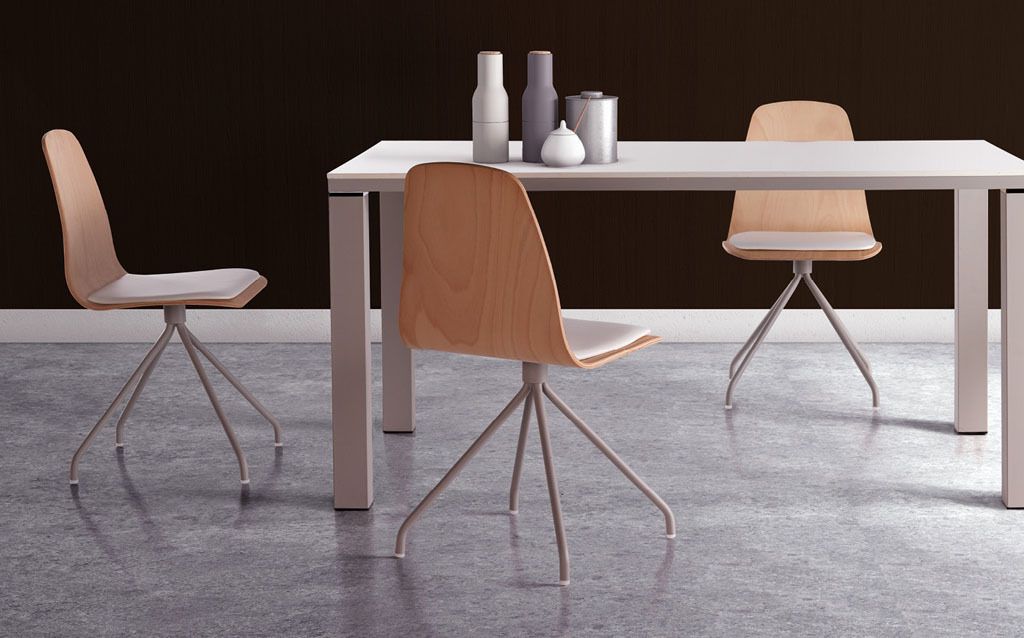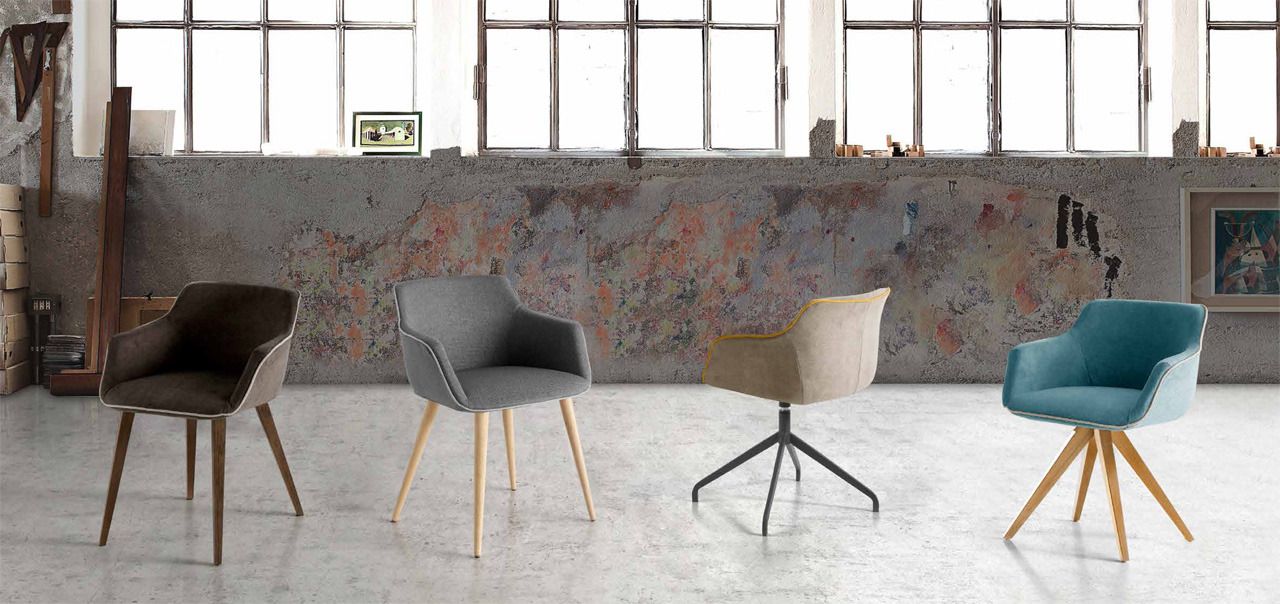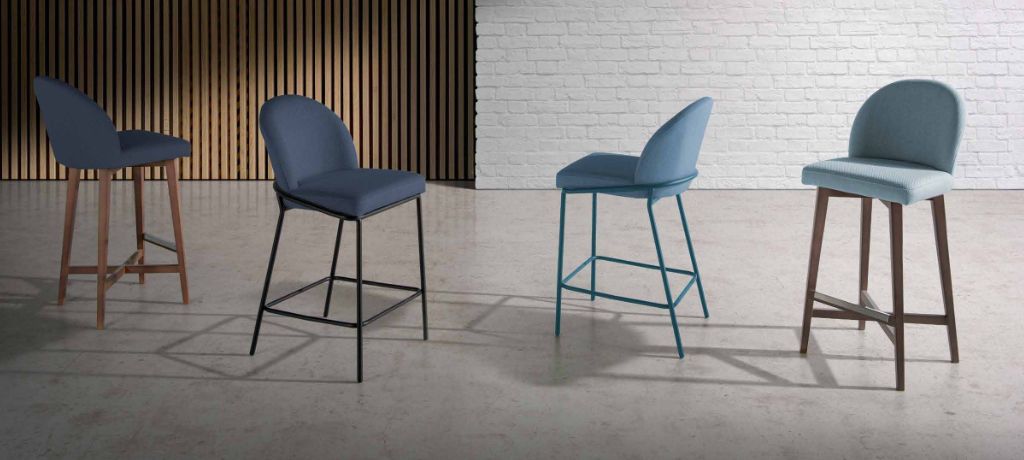 Dana Metal es una colección de sillas y taburetes compuesta por diferentes variantes de pie metálico y acabados de asiento combinables entre sí.